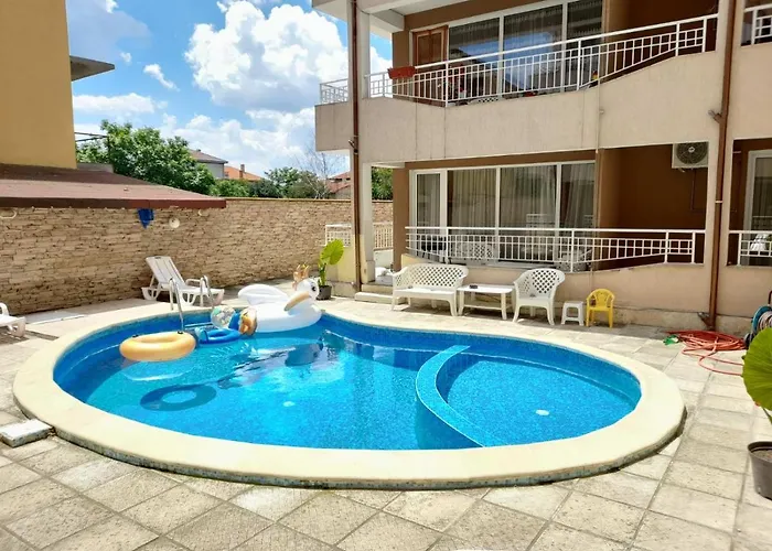 屋外プ-ルを提供するComplex Yavorアパ-トメントアパ-トメントは,古代都市ネセバルから7kmに位置しています. ブルガス空港へは車で20分以内ですから,行き易いです.